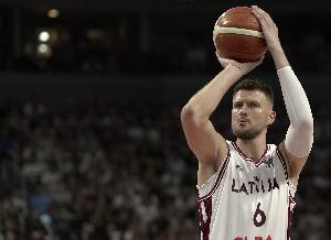 此役拉脱维亚球星波尔津吉斯表现非常出色,打了33分钟22投10中,三分8中4、罚球15中10砍下全场最高34分19篮板外加1助攻1抢断2盖帽,正负值-10。